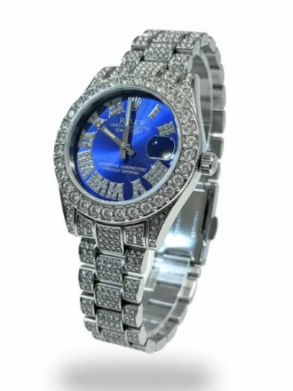 ساعت فول نگين زنانه طرح رولکس ابي کاربنی