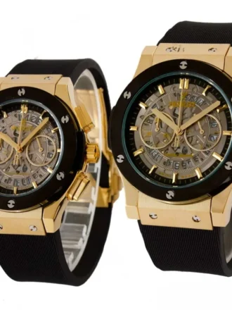 ساعت ست هابلوت طلايي مشکي صفحه اسکلتون