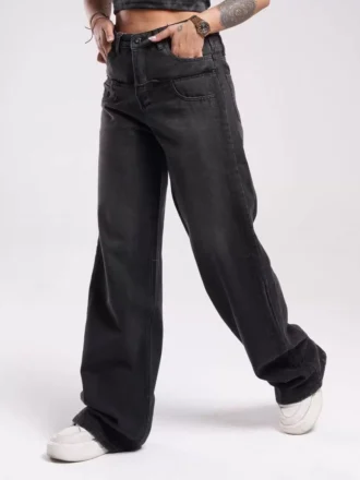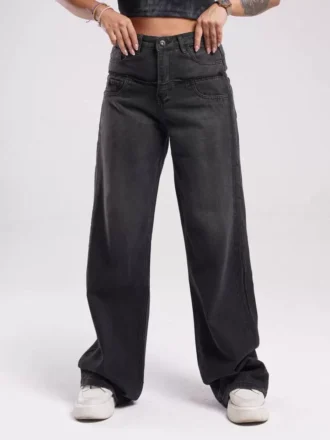 شلوار جین زنانه بگ دوتيکه ذغالی (3084G)