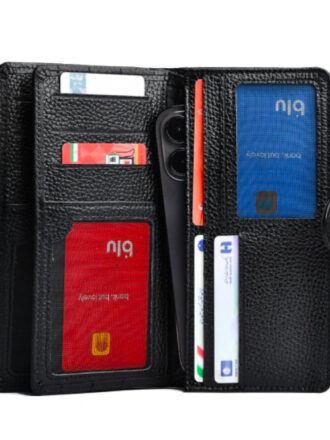 کیف پول کتی طرح نامی چرم ساده مشکی