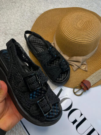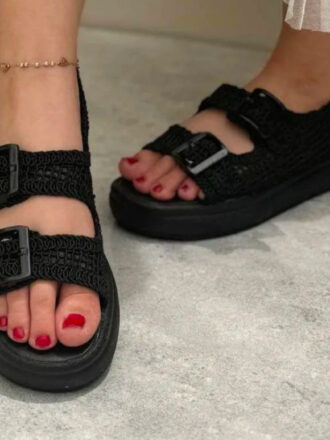 صندل زنانه مکرومه مشکی