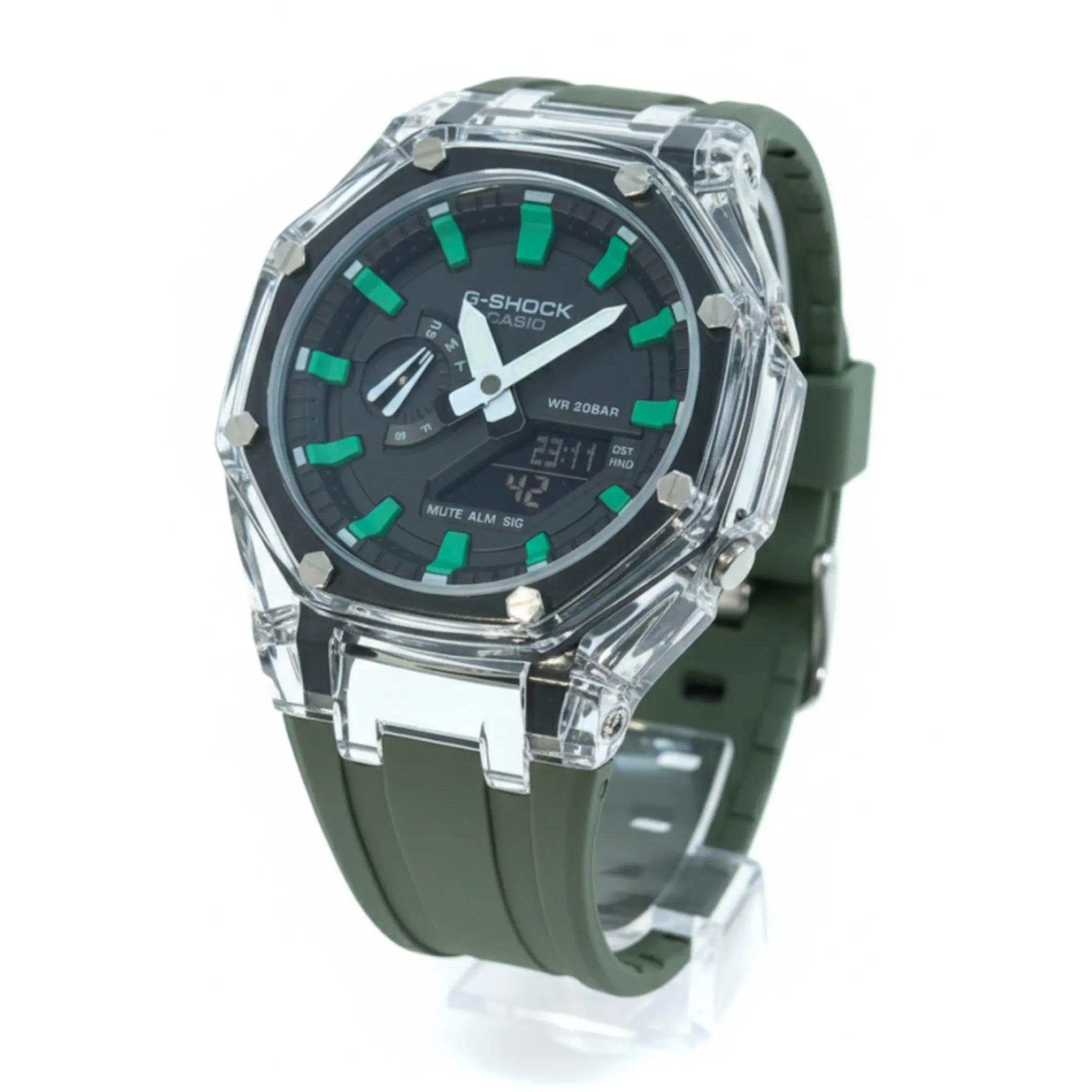 جی شاک2100صفحه شفاف سبز زيتونی