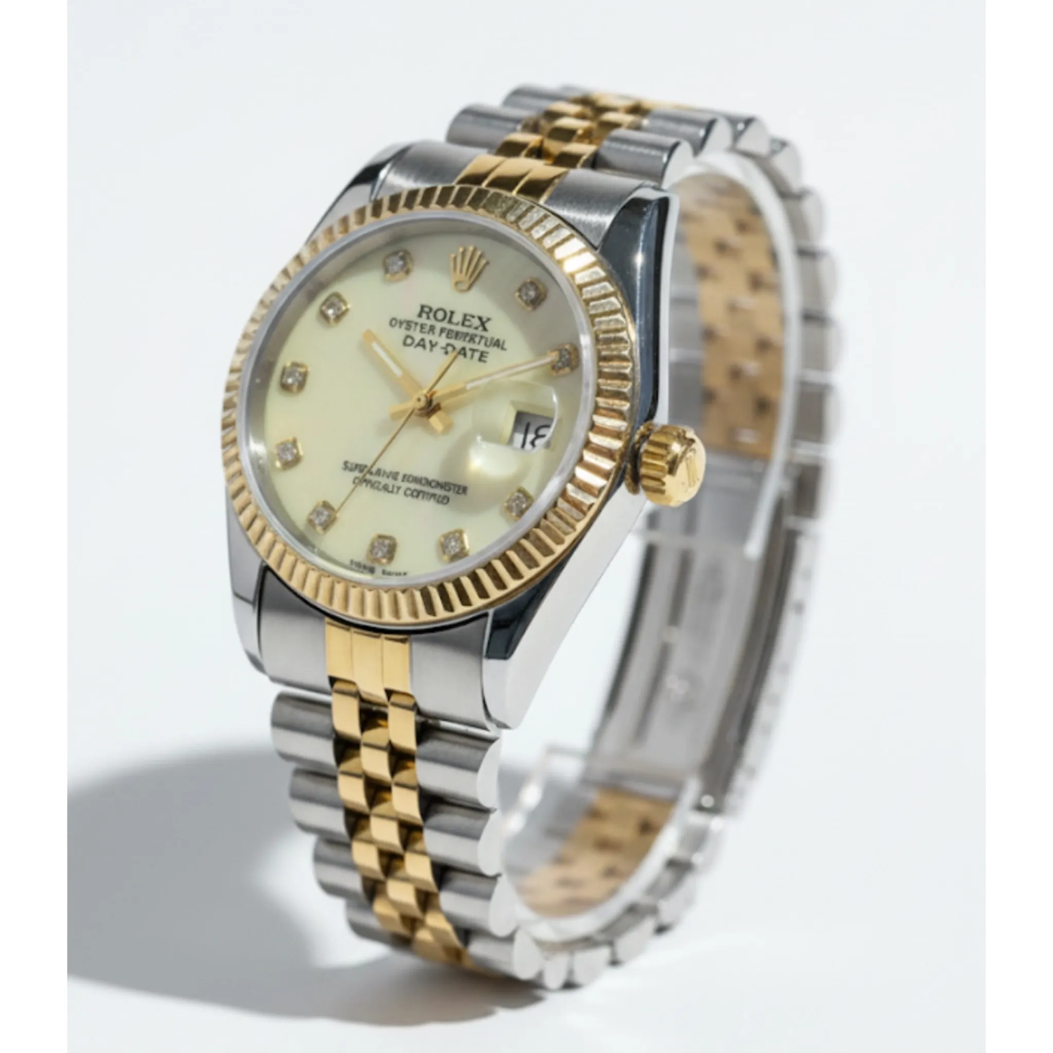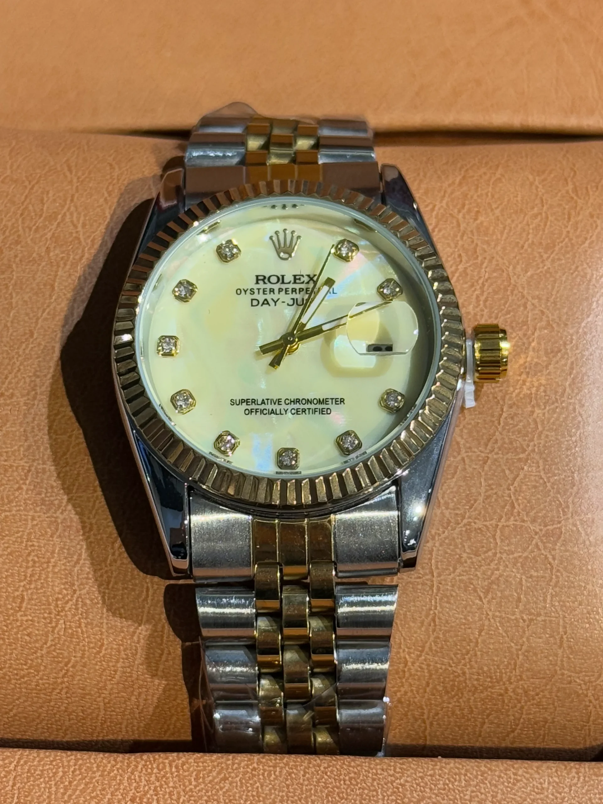 ساعت استيل زنانه طرح رولکس نقره ای طلايی