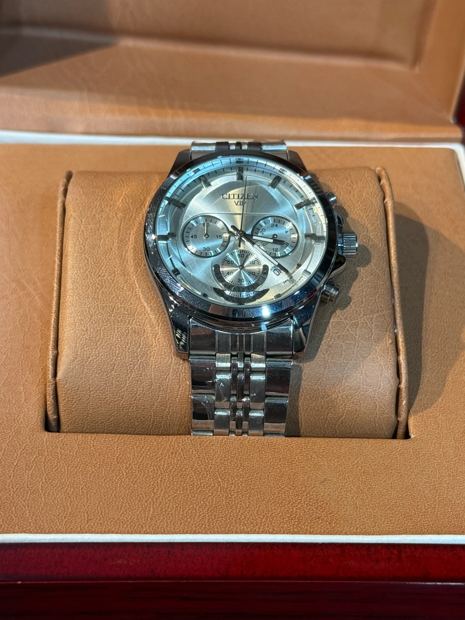 ساعت طرح سيتيزن مردانه نقره ای صفحه مشکی قیمت اصلی: 3,490,000 تومان بود.قیمت فعلی: 2,690,000 تومان.