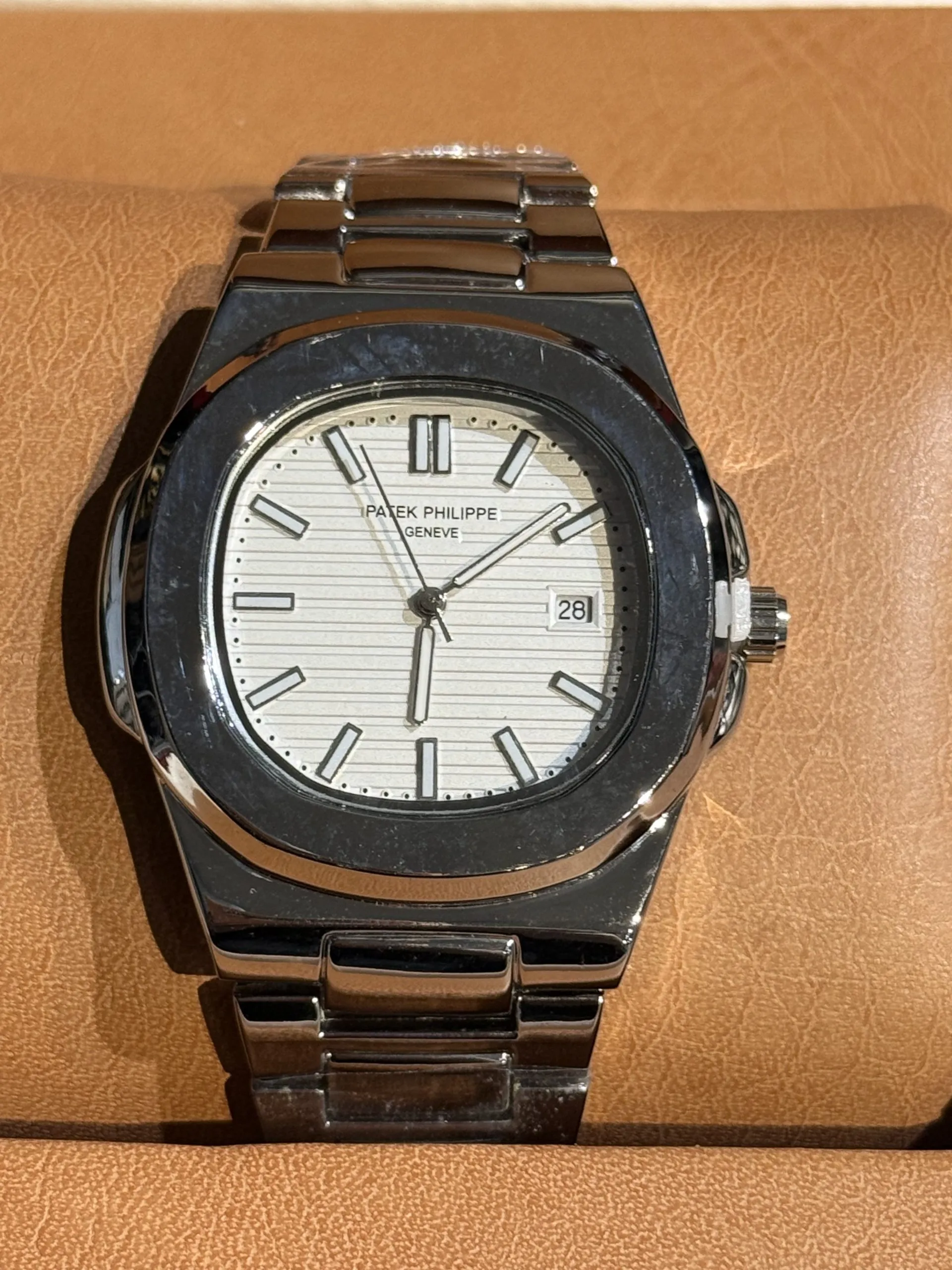 ساعت استيل مردانه طرح پتک فيلپ نقره ای صفحه سفيد