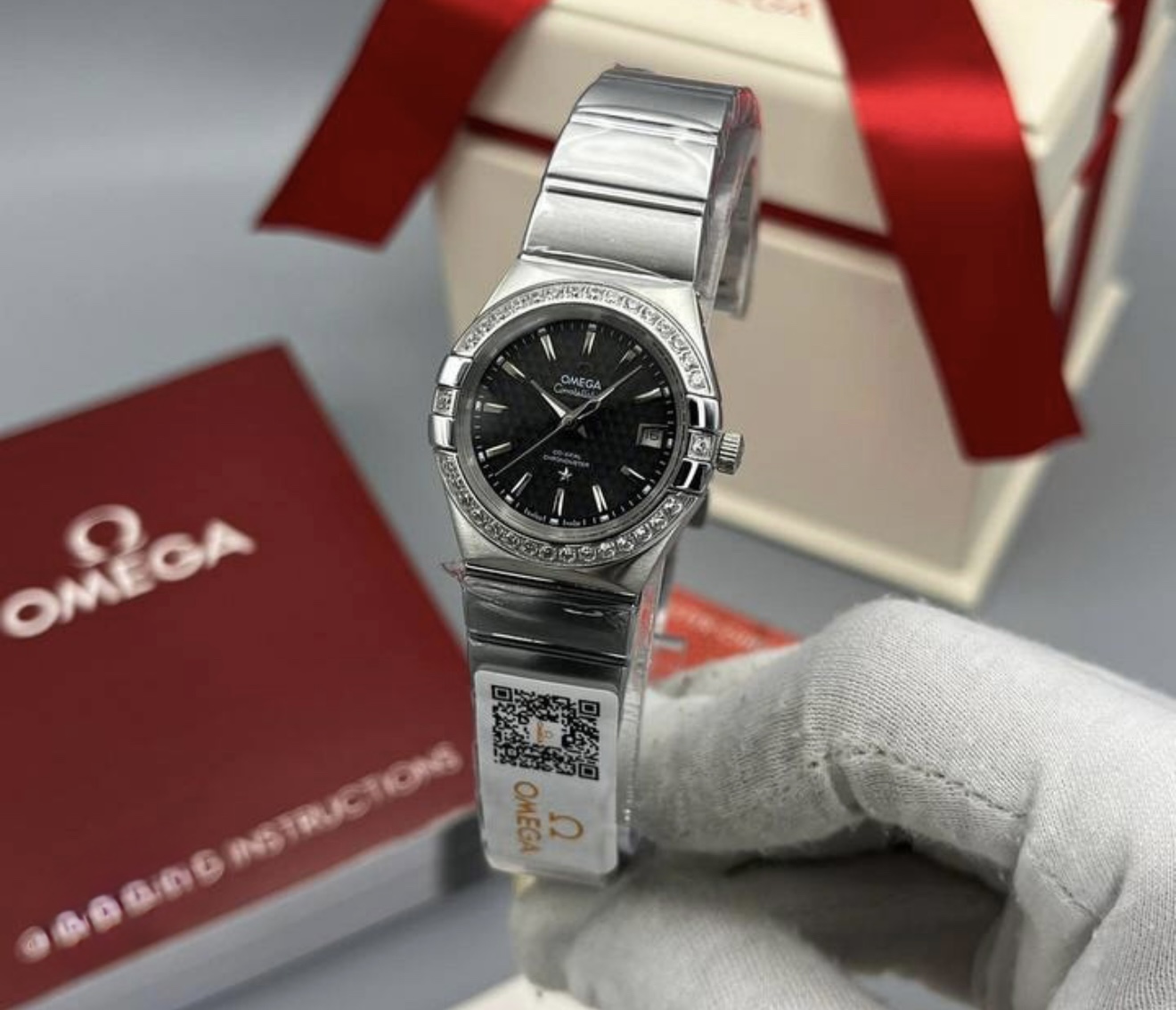 ساعت امگا زنانه دور نگين صفحه مشکي