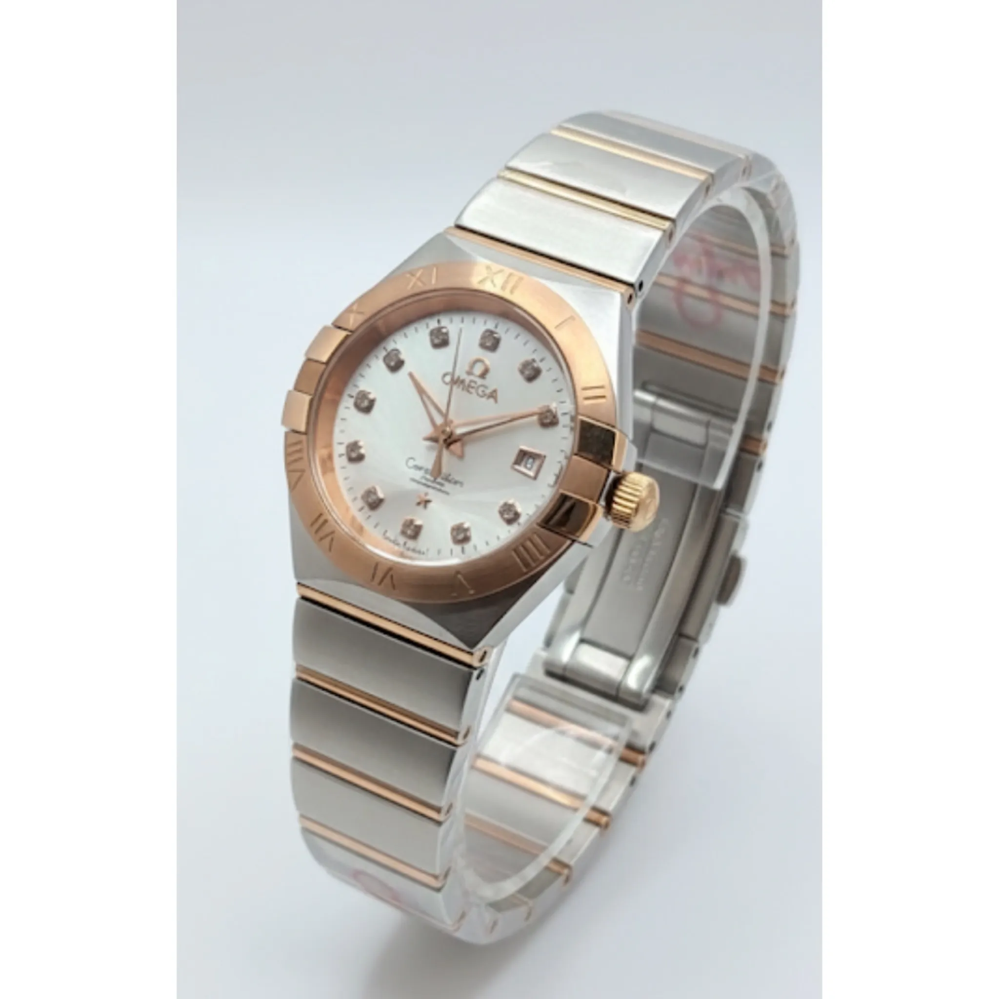 ساعت امگا زنانه نقره ای رزگلد