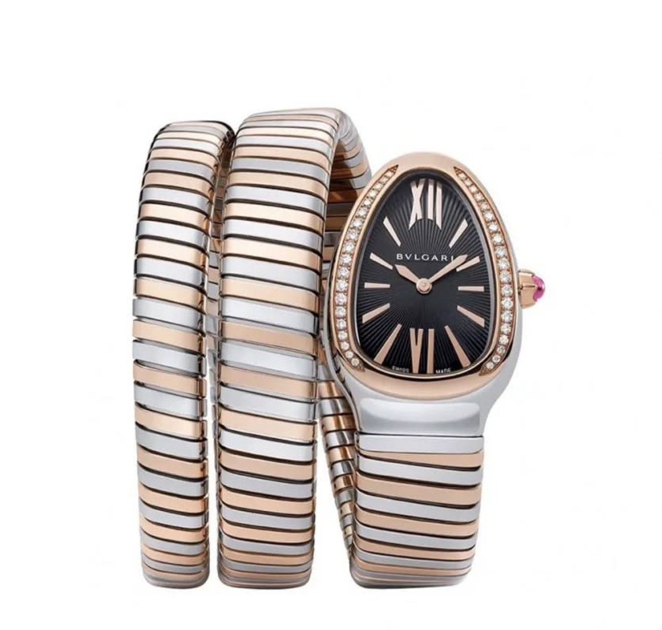 ساعت بولگاري ماري زنانه رزگلد نقره اي مشکي دور نگين