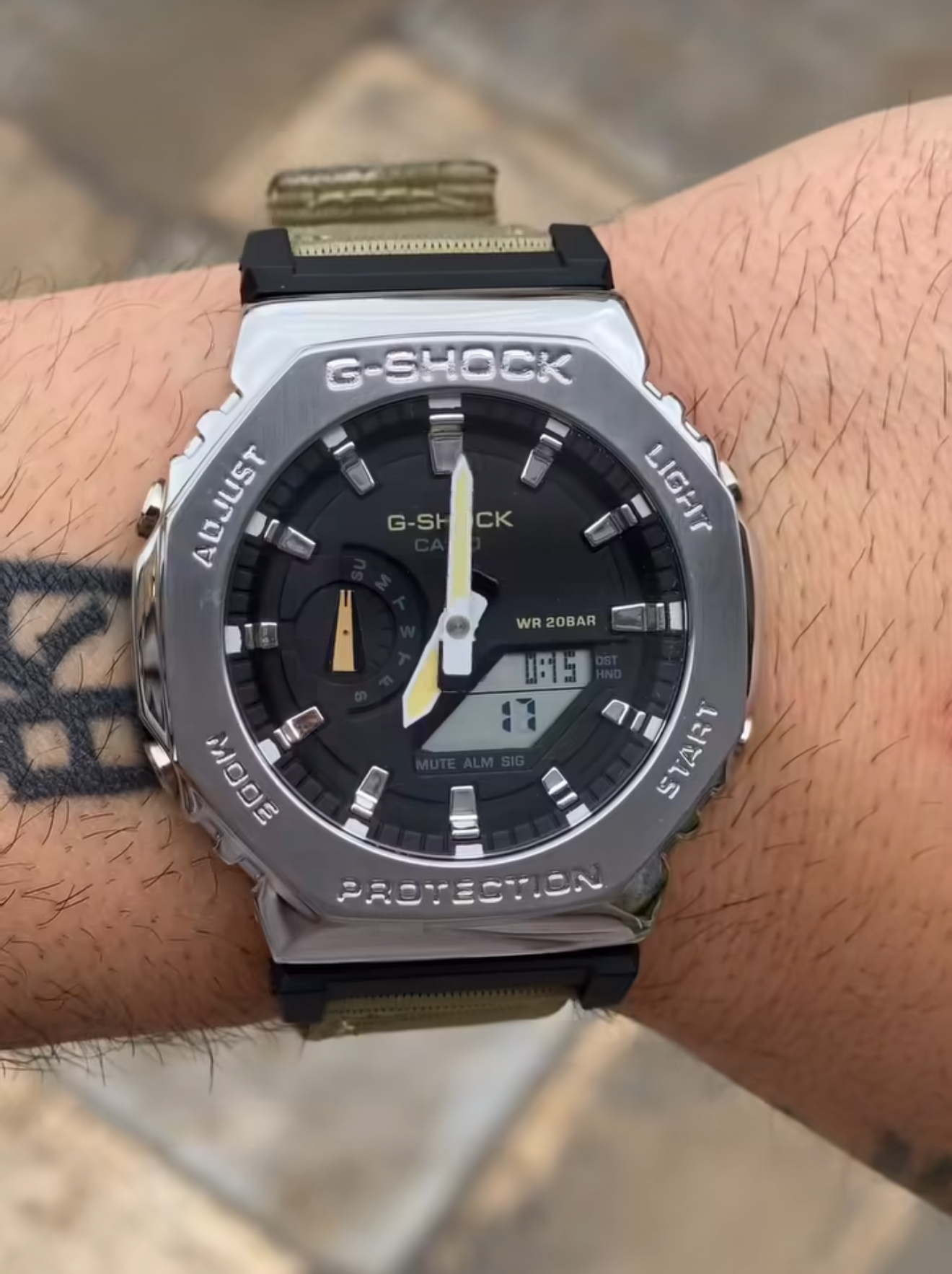 ساعت جي شاک2100بند برزنتي سبز زيتوني