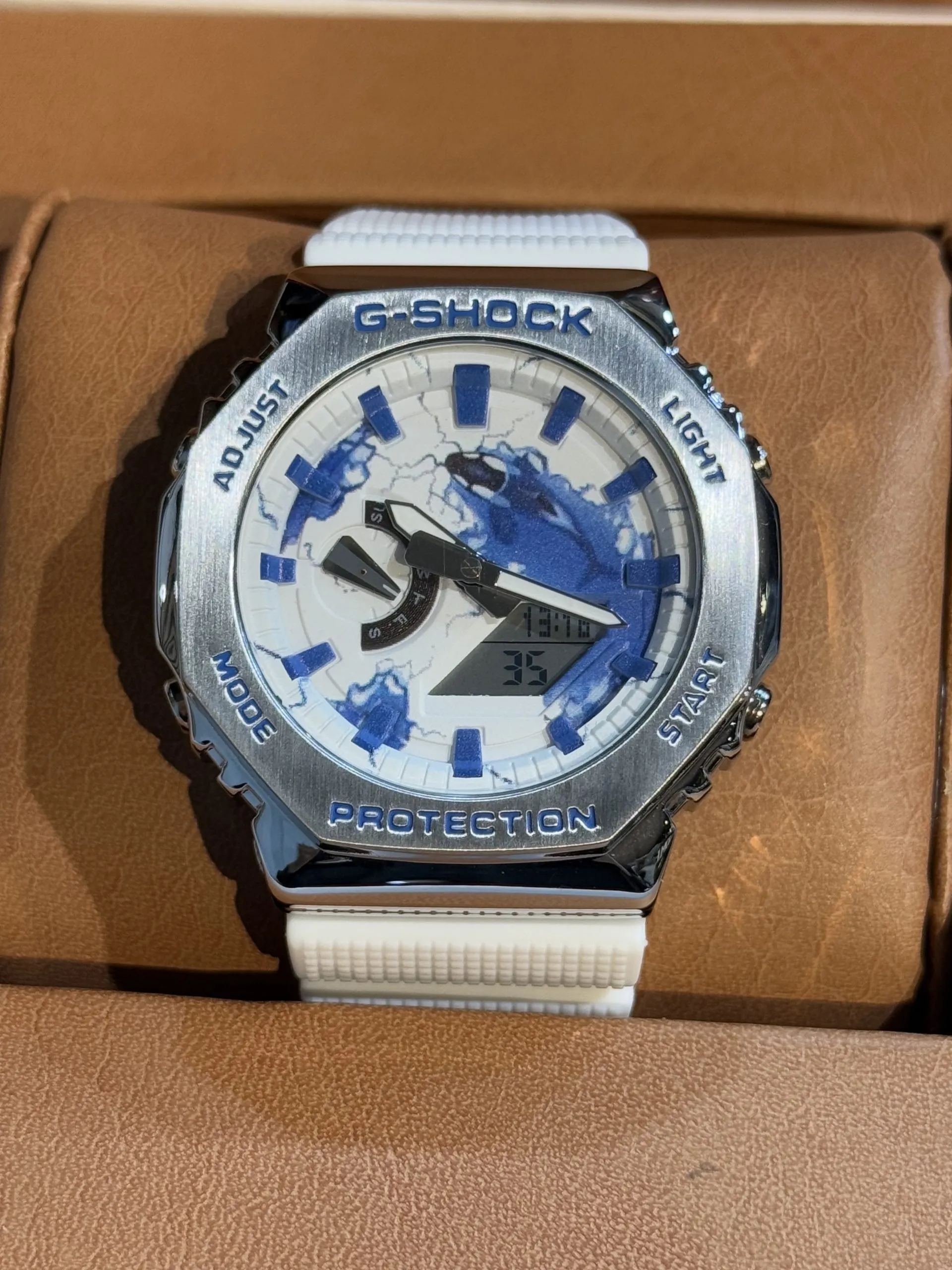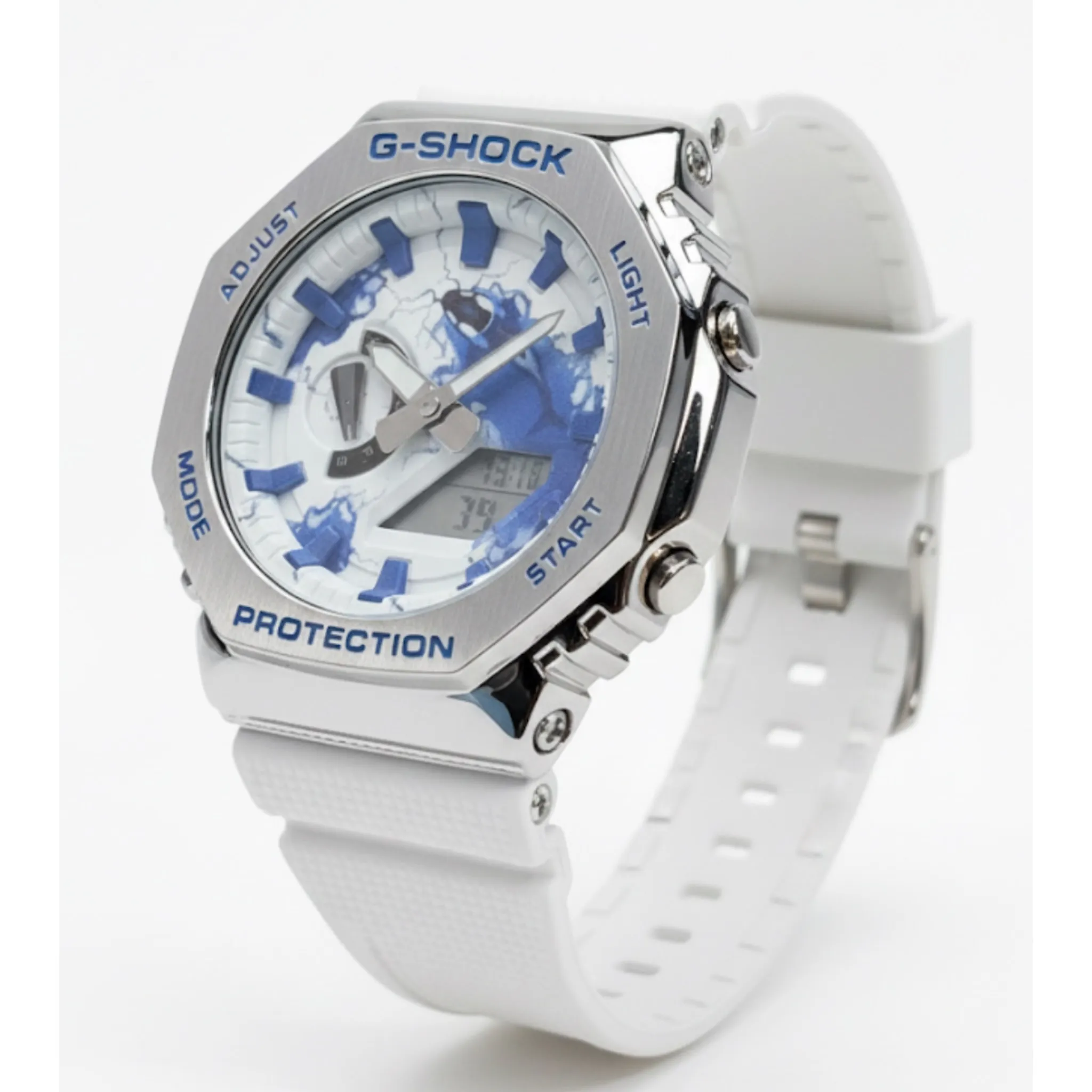 ساعت جی شاک2100 سفيد صفحه آبی