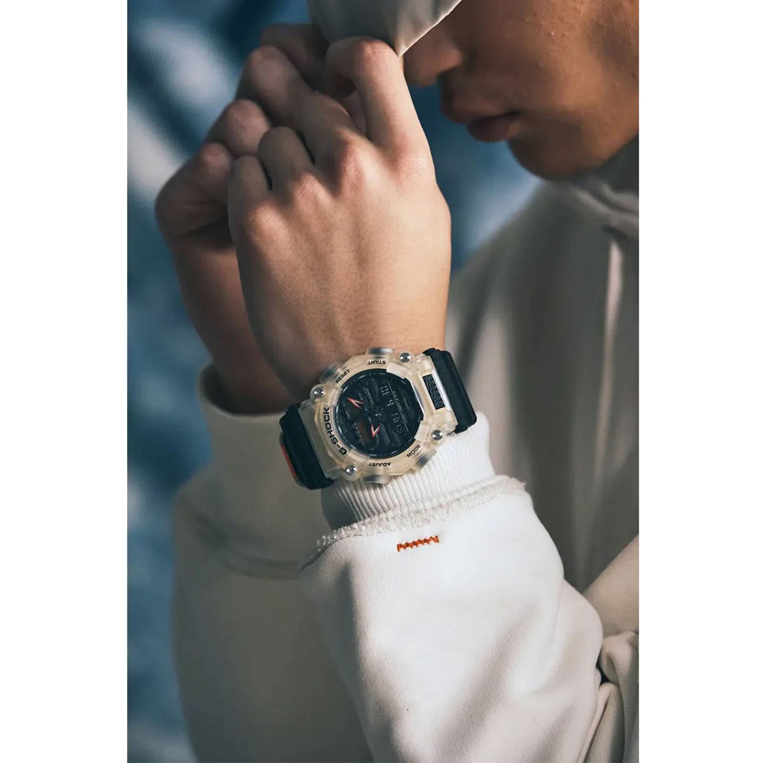 جی شاک مدل GBA-900-1A یکی از جدیدترین مدلهای سری G-Squad که از محبوب ترین سریهای ورزشی جی شاک است محسوب می شود. این مدل ورزشی جی شاک با اتصال از طریق بلوتوث Bluetooth® با تلفن همراه و همچنین شتاب سنجی تعداد گامها و مسافت طی شده و موارد دیگر را محاسبه کرده و از طریق ارتباط بلوتوث به تلفن همراه شما انتقال می دهد. این عملکرد باعث تقویت انگیزه و همچنین آگاهی دقیق از کالری سوزانده شده و رسیدن به اهداف ورزشی خواهد شد.عملکردهای پشتیبانی از برنامههای تناسب اندام و سلامتی روزانه شامل حسگر شتاب 3 محورهای که تعداد قدمهای شما را میشمارد، تایمر شمارش معکوسی که میتوانید تا 20 ترکیب تایمر هر کدام با پنج تایمر ایجاد کنید، حافظه ثبت تا 200 دور و بسیاری موارد دیگر است.
