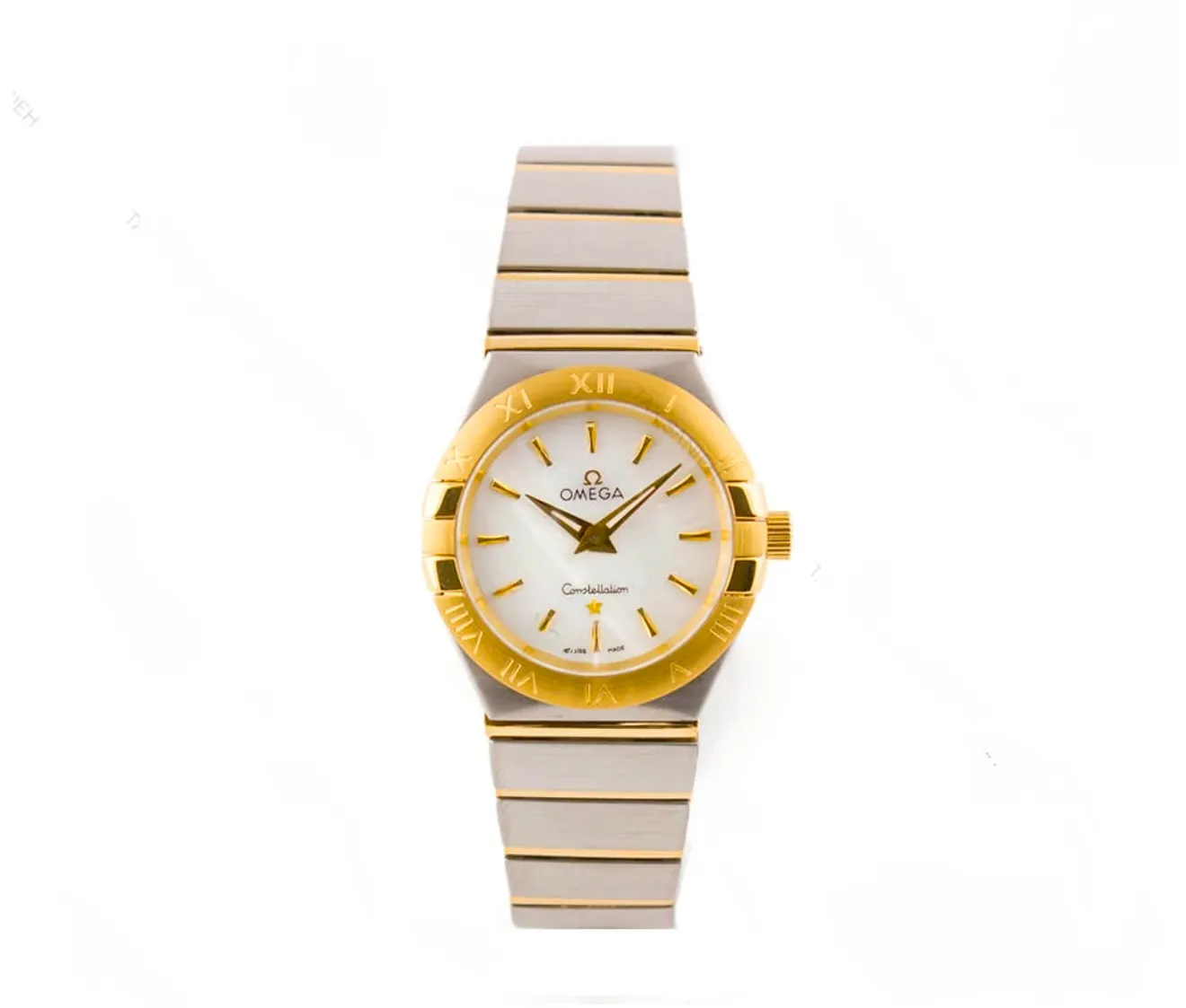 ساعت زنانه امگا کانسليشن طلايي ايندکس خطي سفيد
