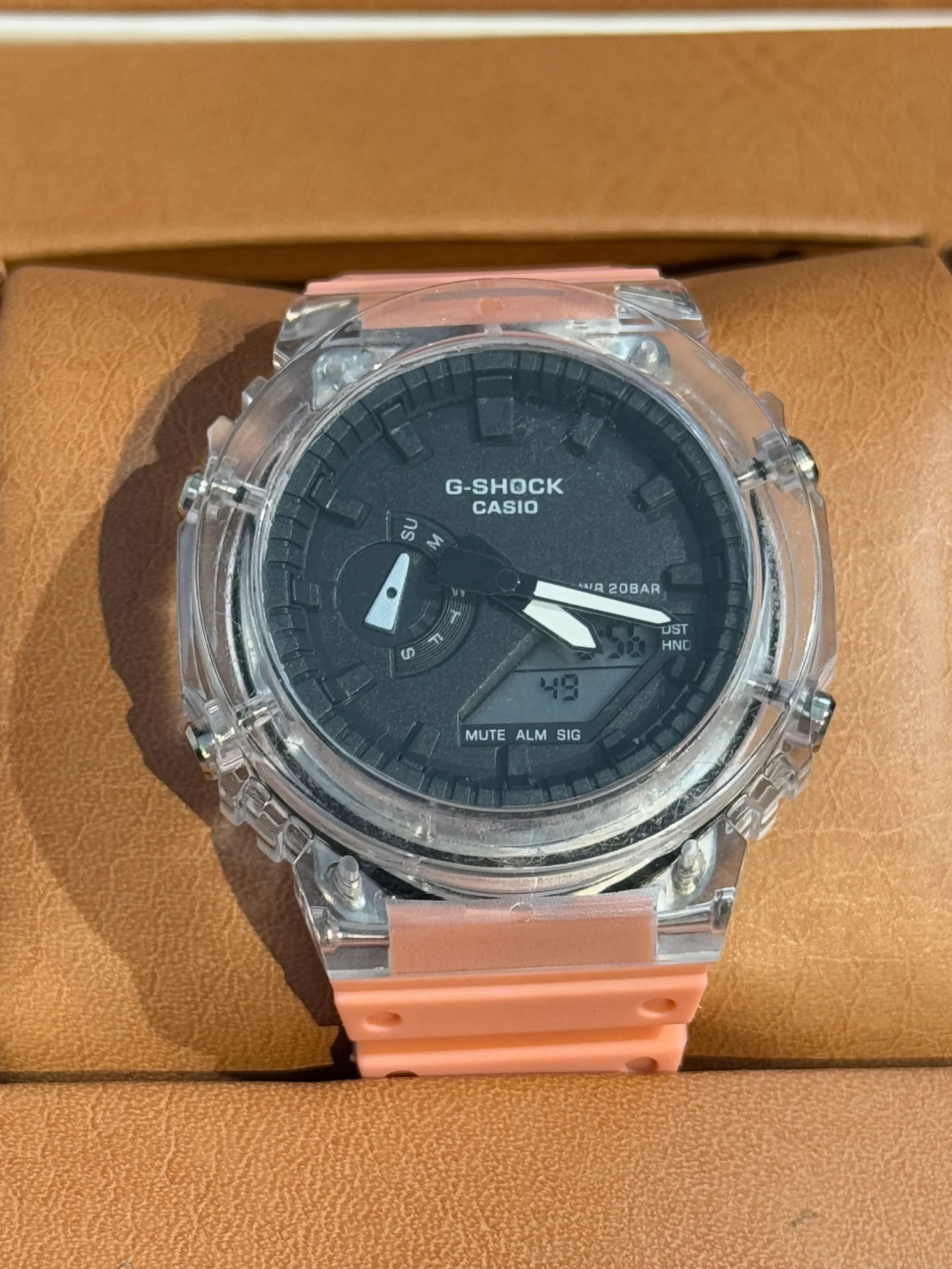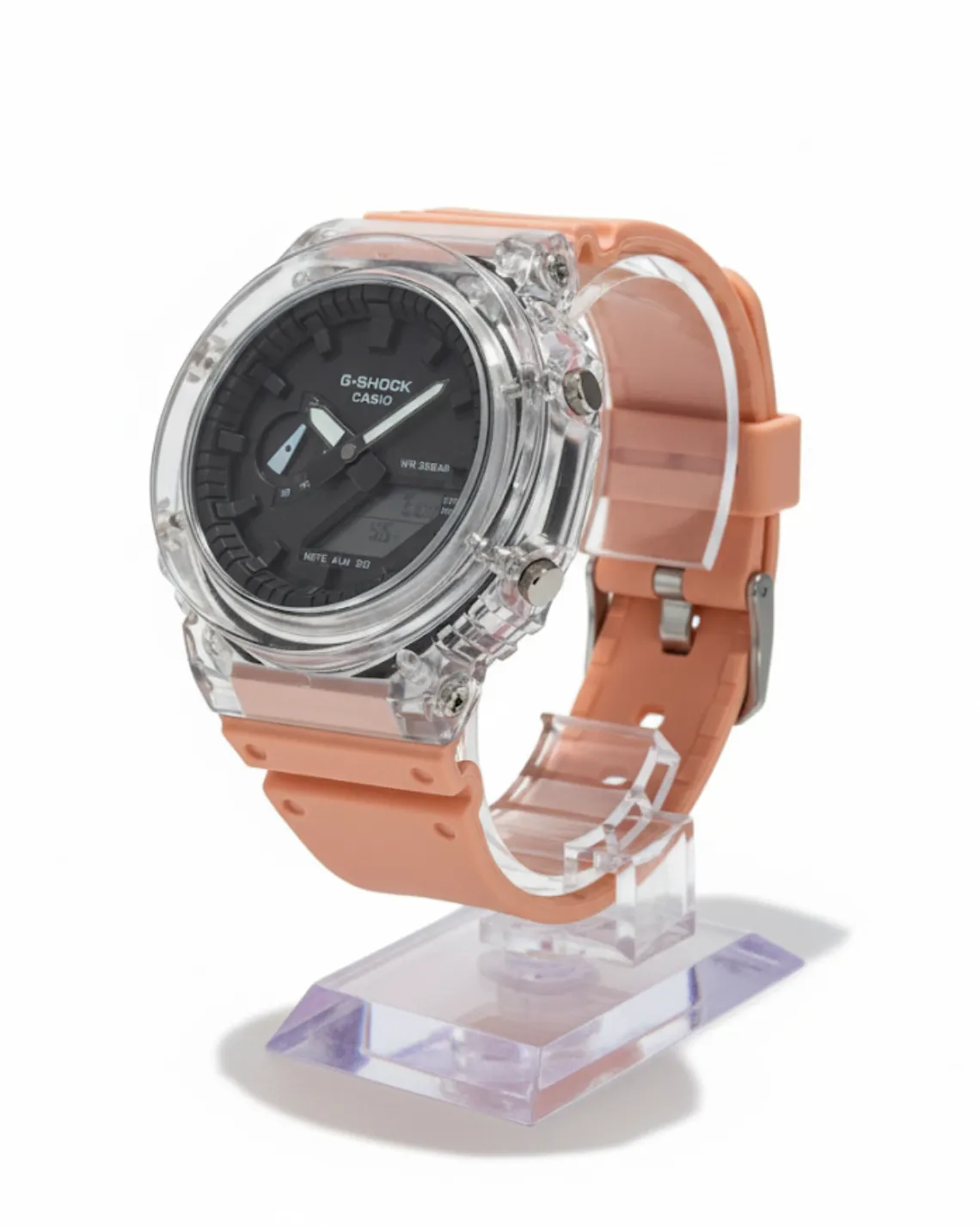 ساعت طرح جی شاک 2100 صفحه شفاف گلبهی