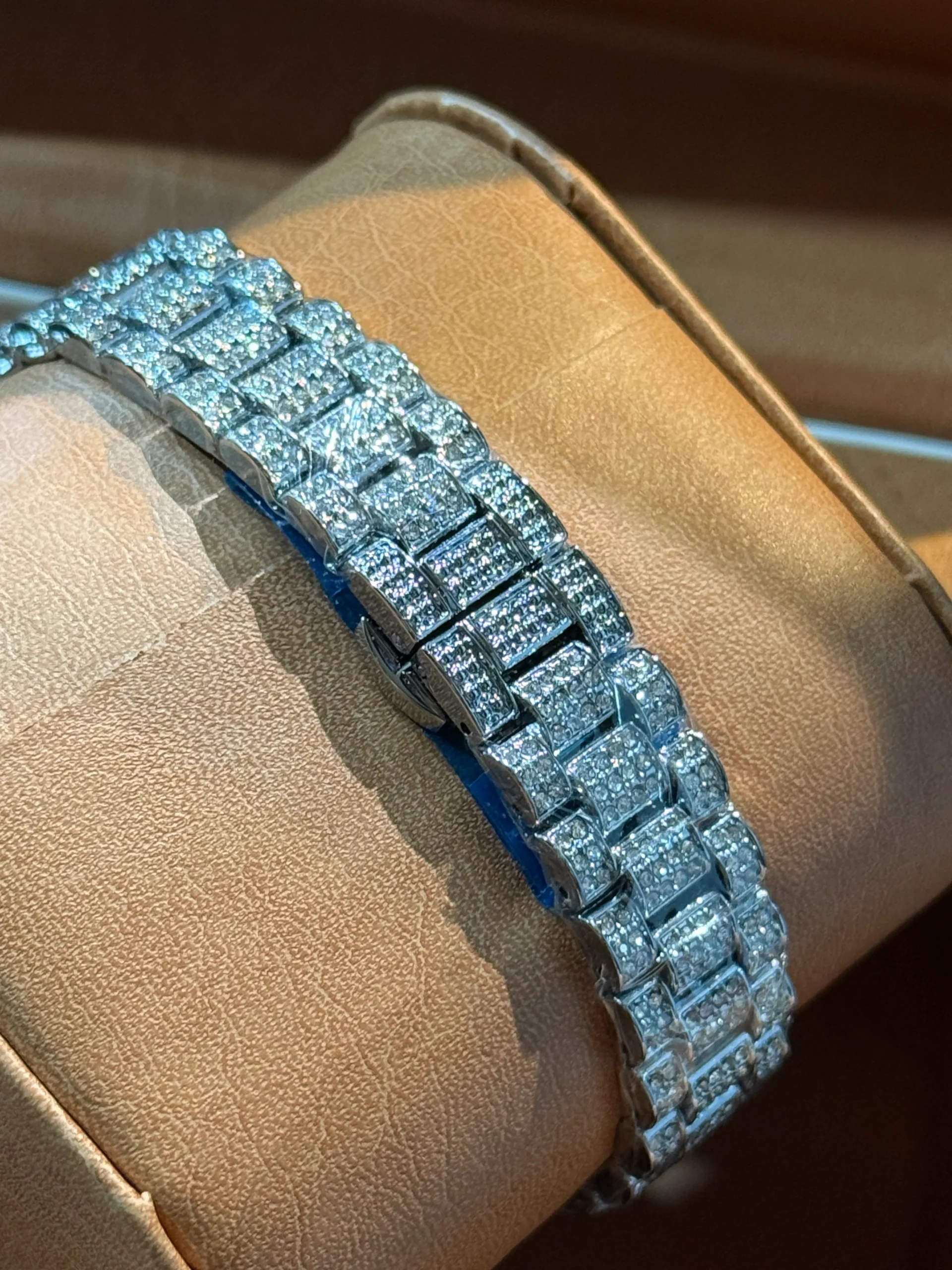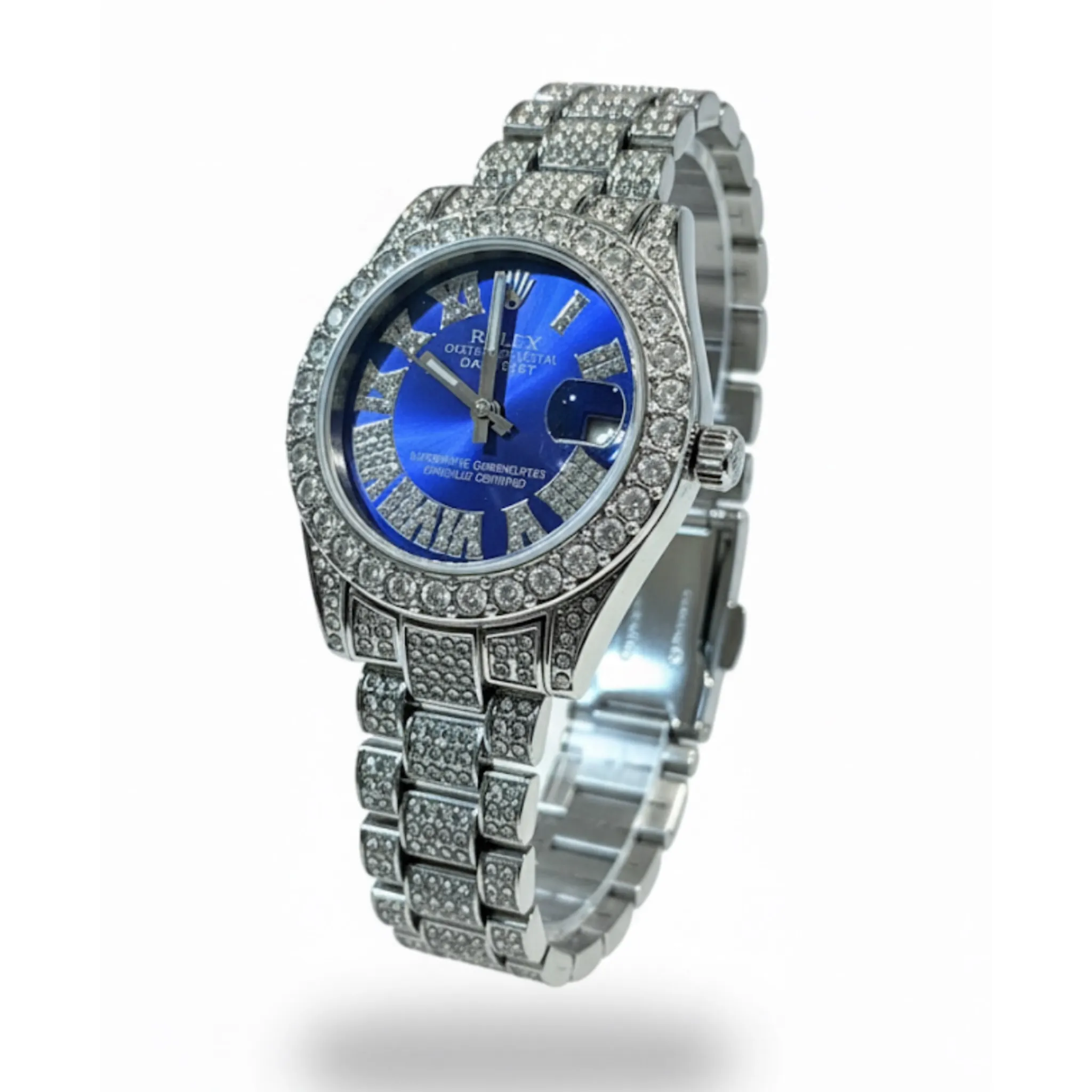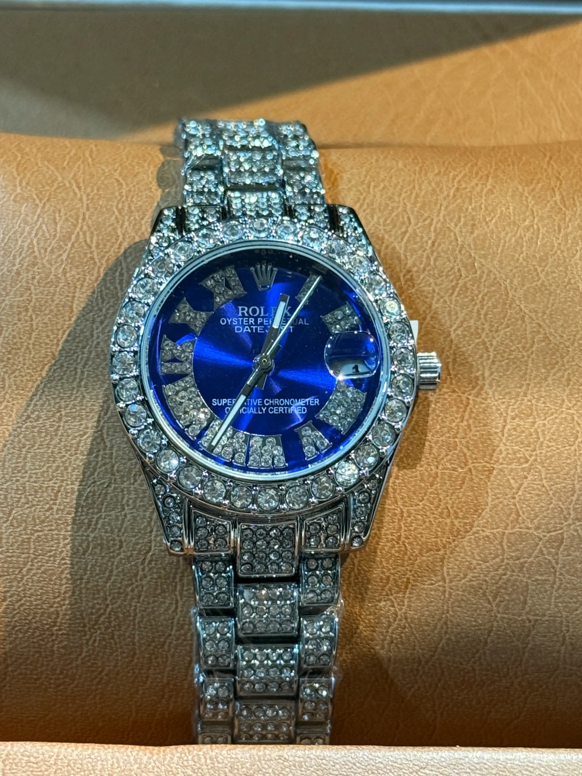 ساعت فول نگين زنانه طرح رولکس ابي کاربنی