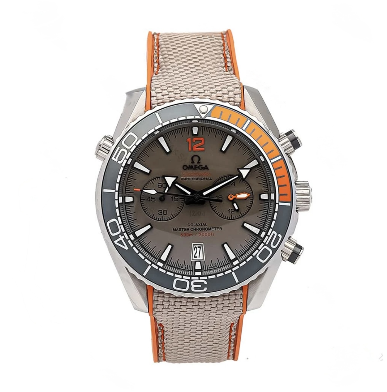 ساعت مردانه امگا سيمستر سه موتوره طوسي نارنجي