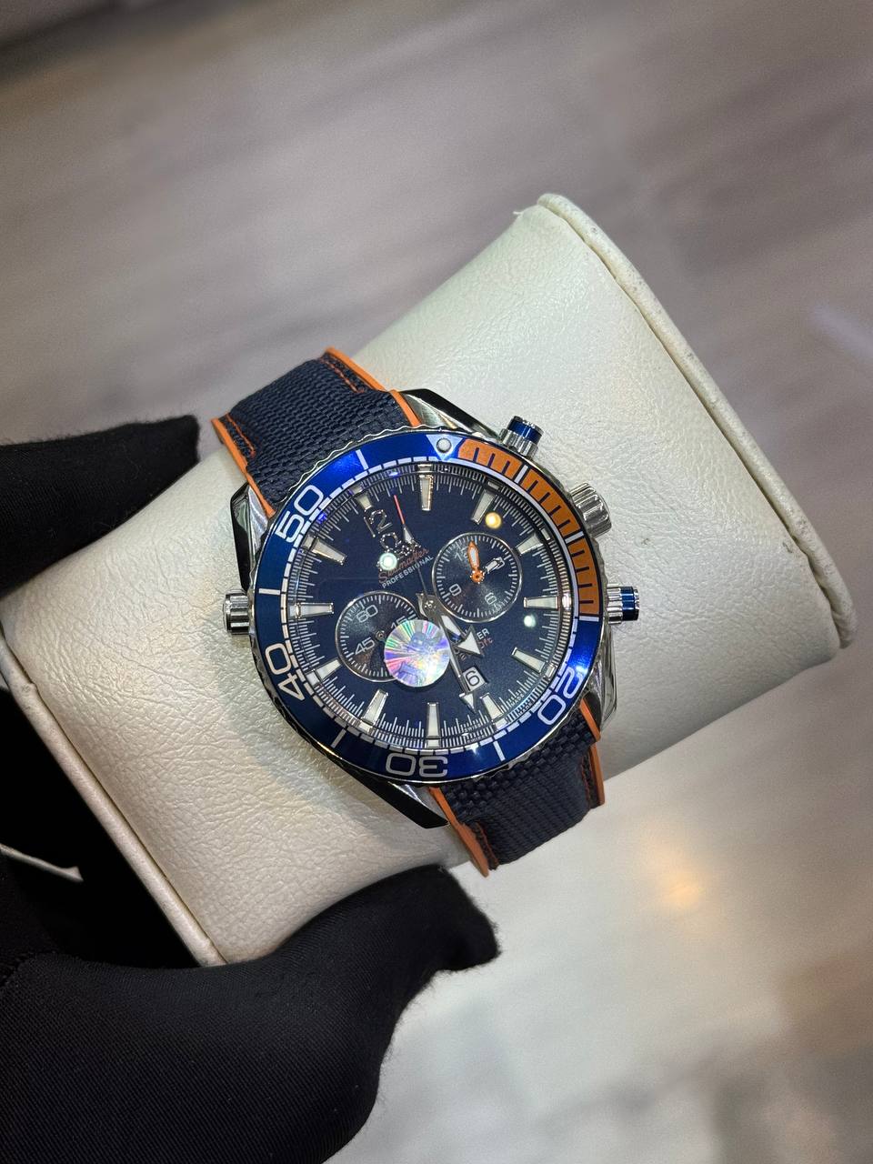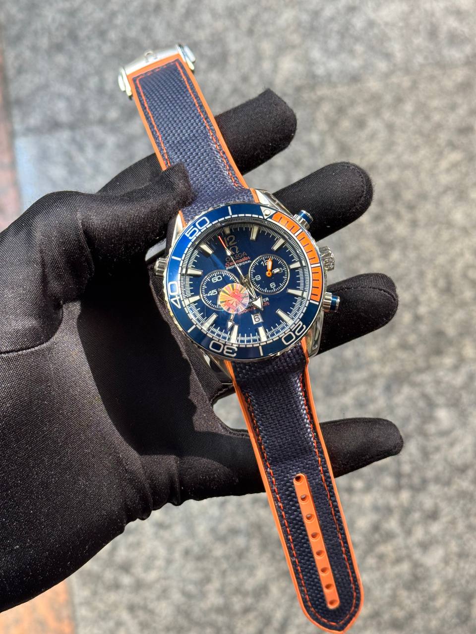 ساعت مردانه امگا سيمستر کرنوگراف سرمه اي نارنجي