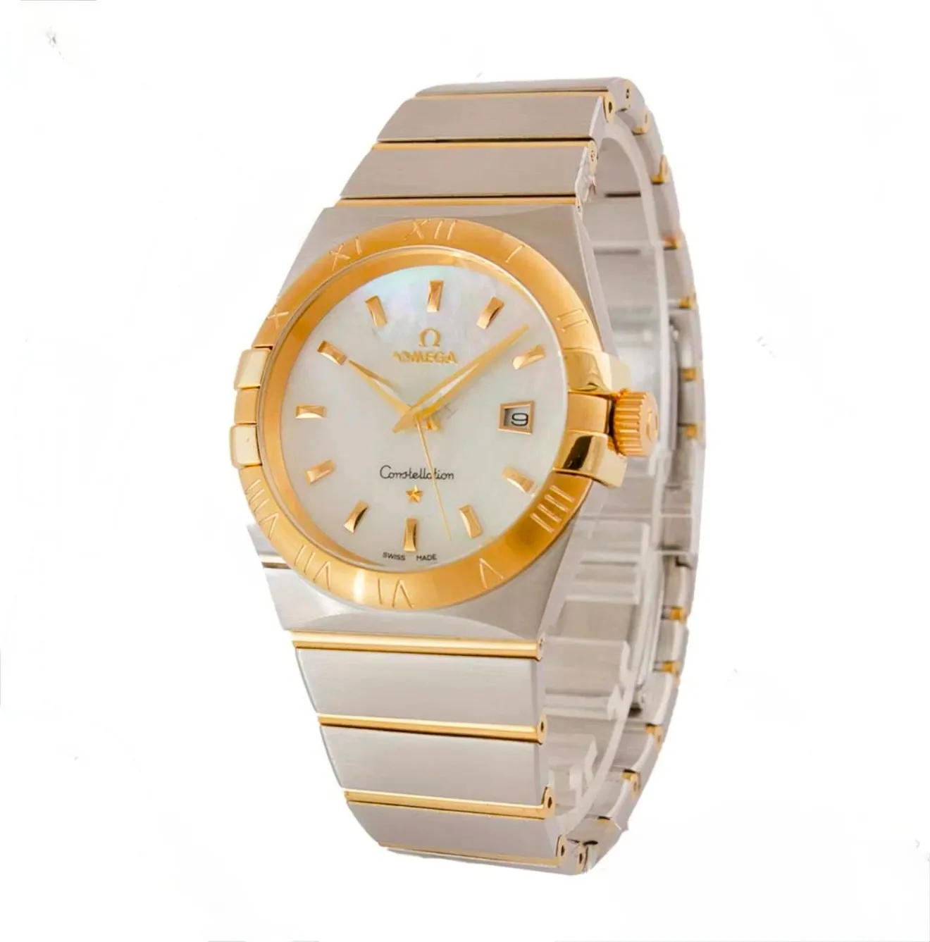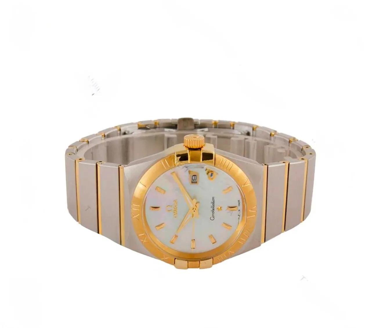 ساعت مردانه امگا کانسليشن دورنگ طلايي سفيدصدفي ايندکس