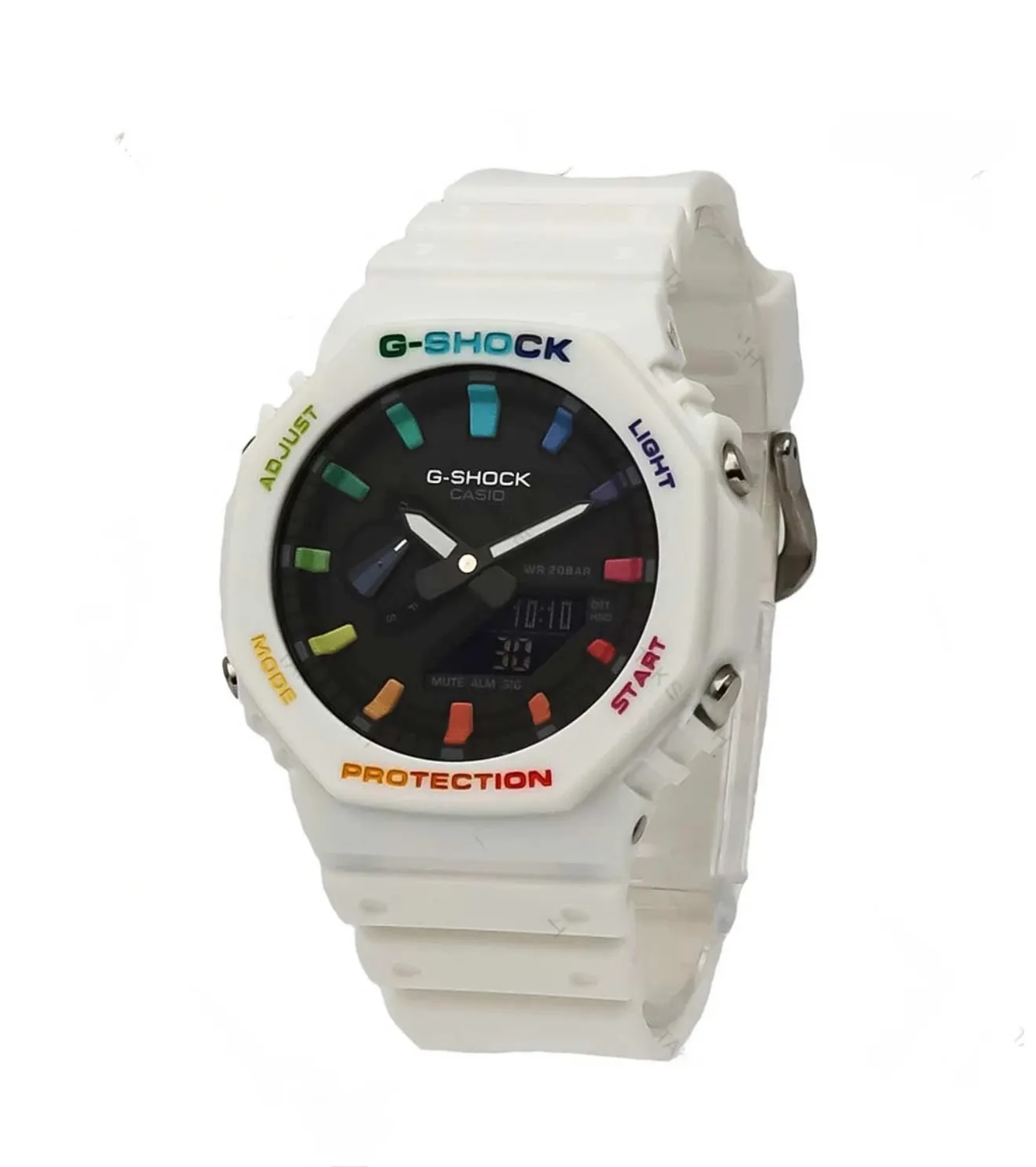 ساعت مردانه جی شاک GA2100 سفید رنگین کمانی