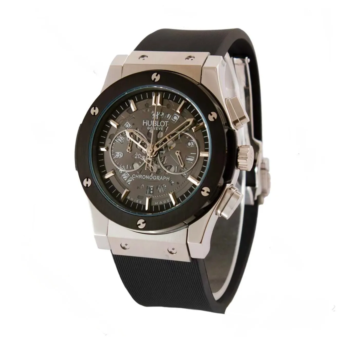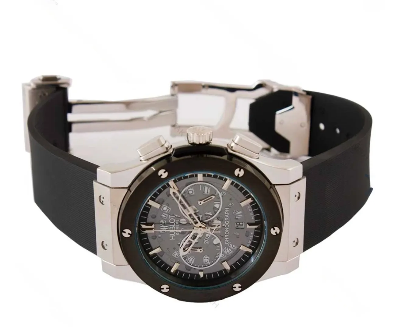 ساعت مردانه سه موتوره هابلوت سيلور مشکي اسکلتون