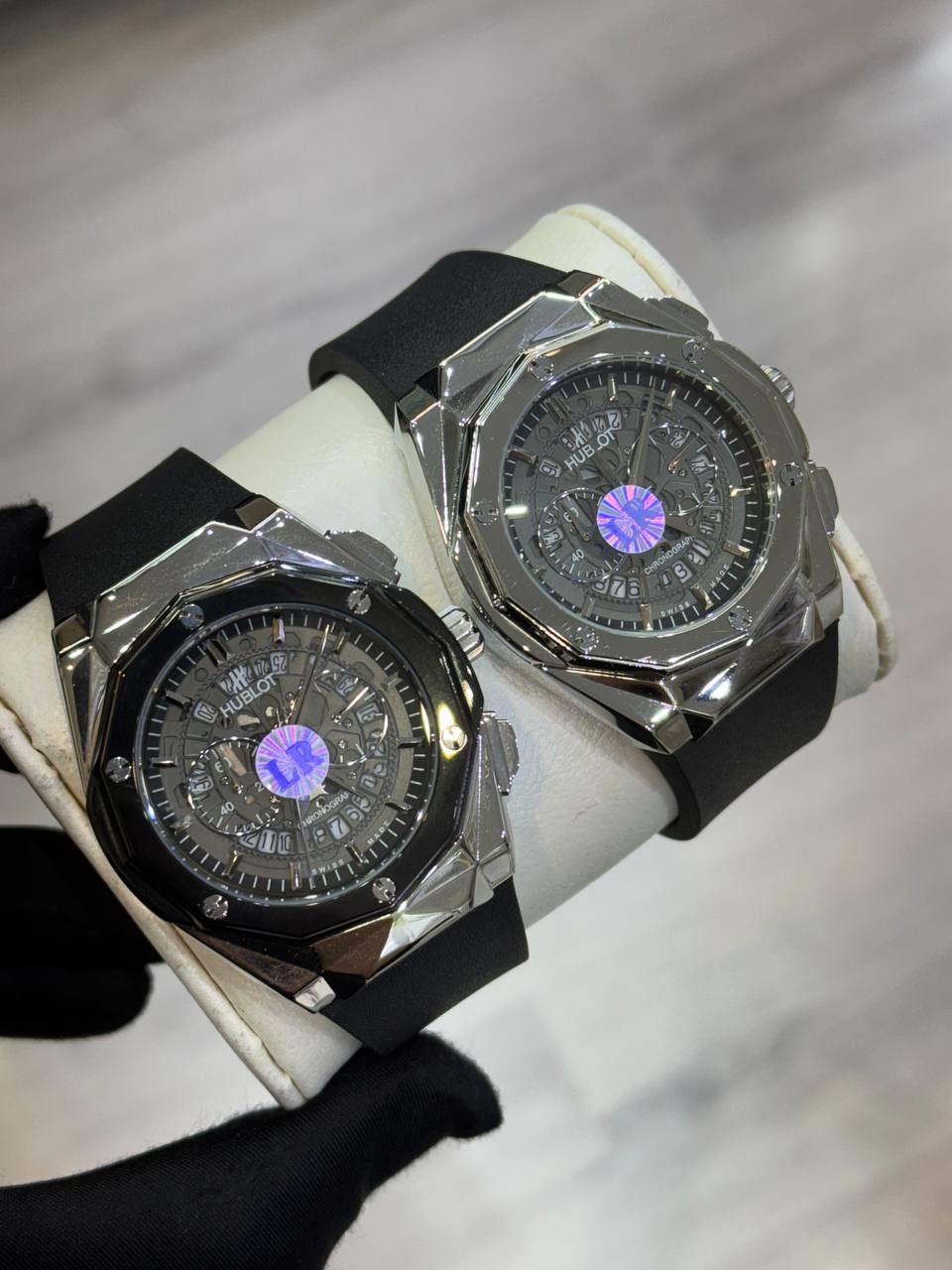 ساعت هابلوت مردانه چندضلعي نقره اي صفحه اسکلتون