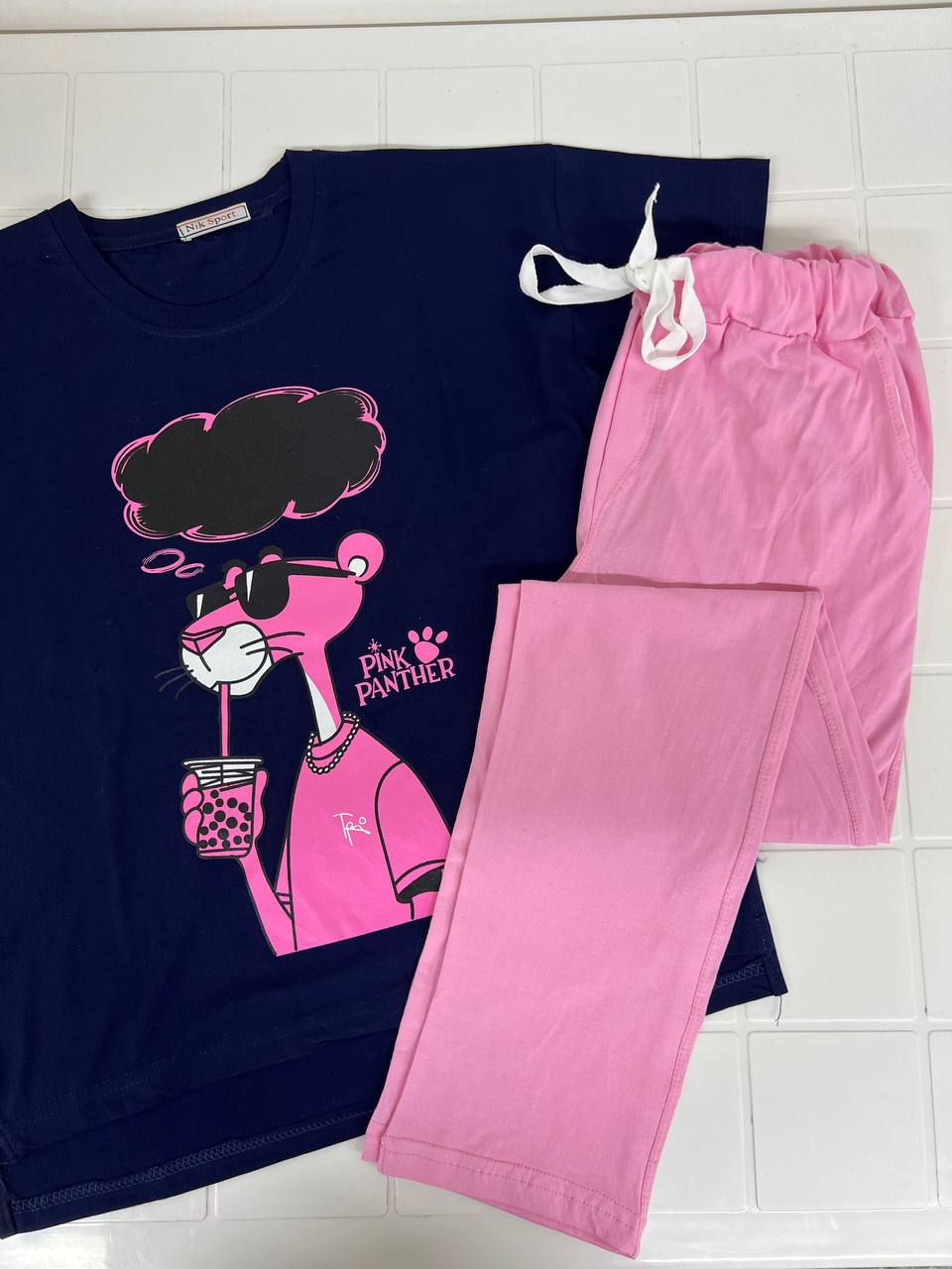 ست دخترانه تيشرت شلوار پلنگ صورتی