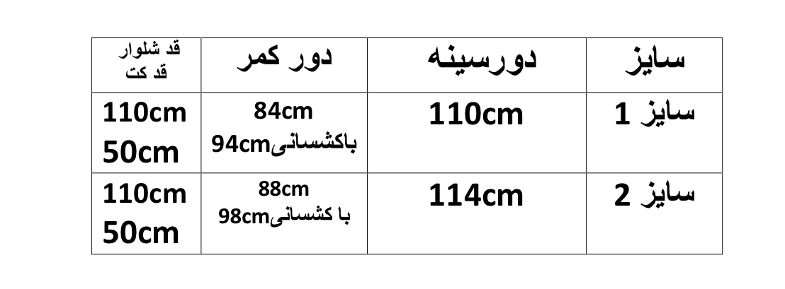 سايزبندي: 2سایز مناسب36تا46