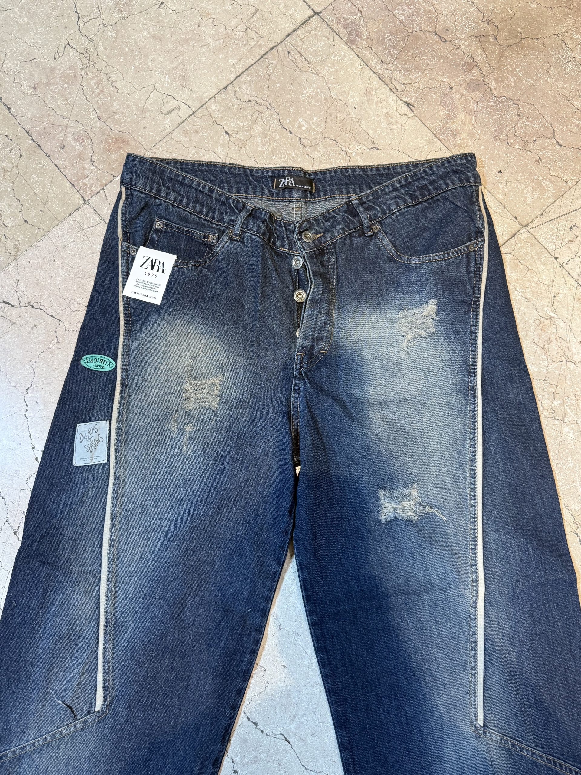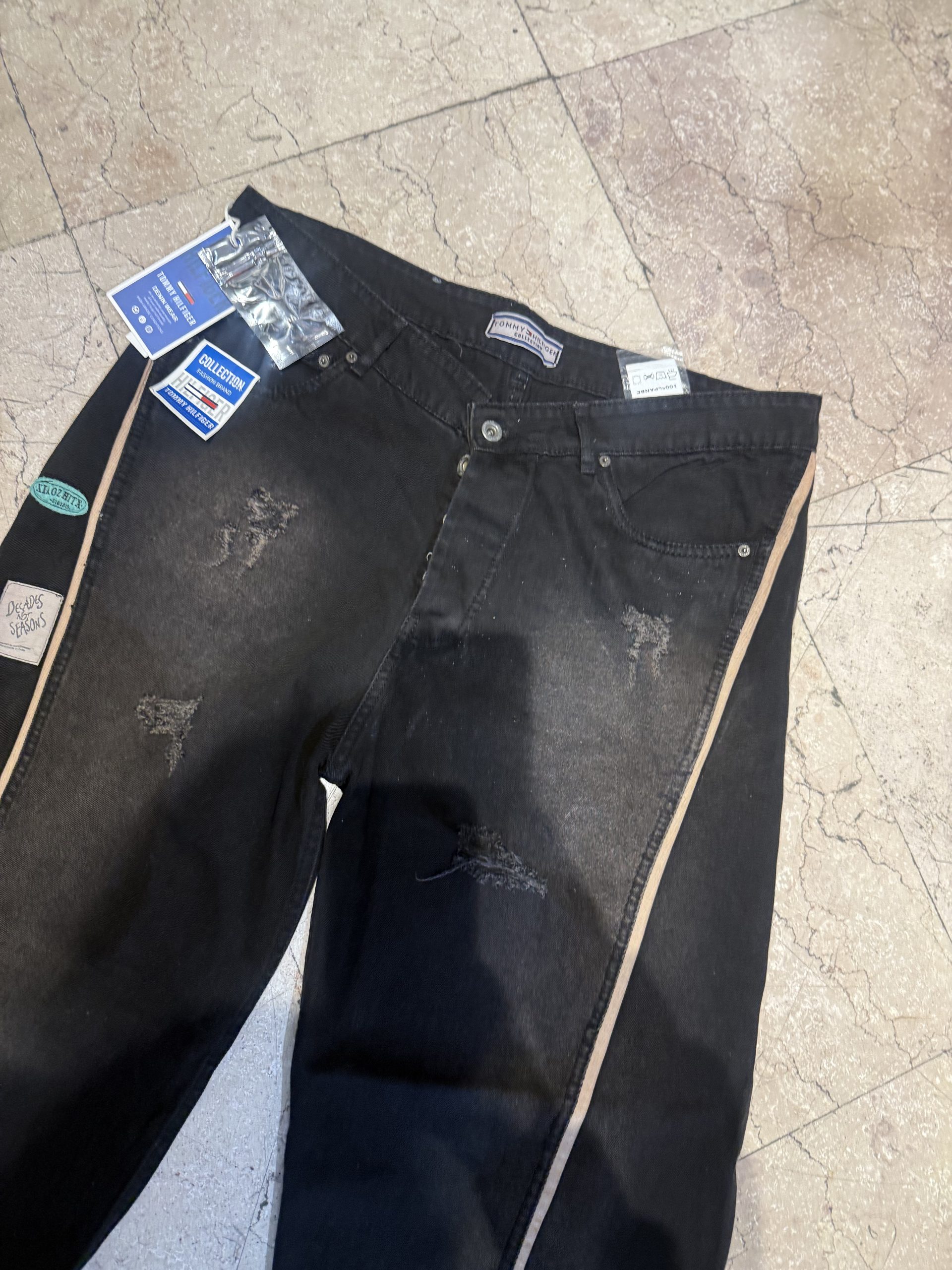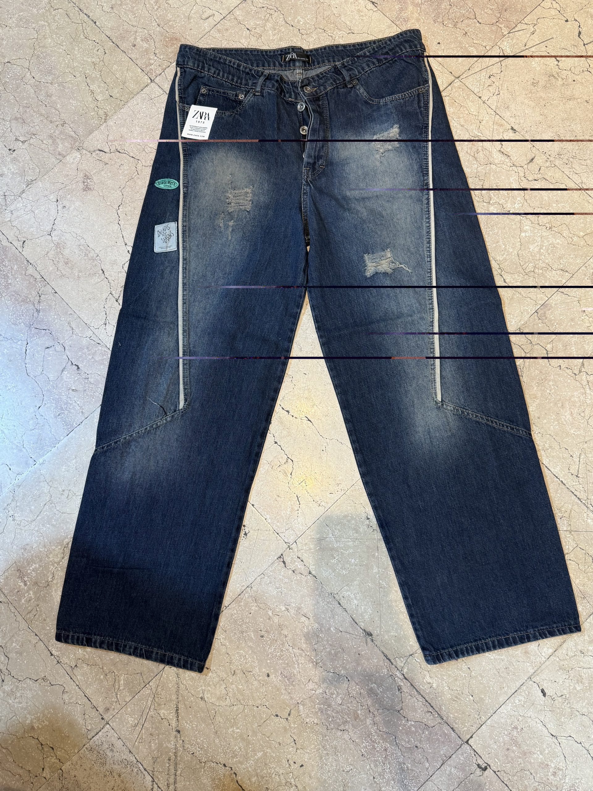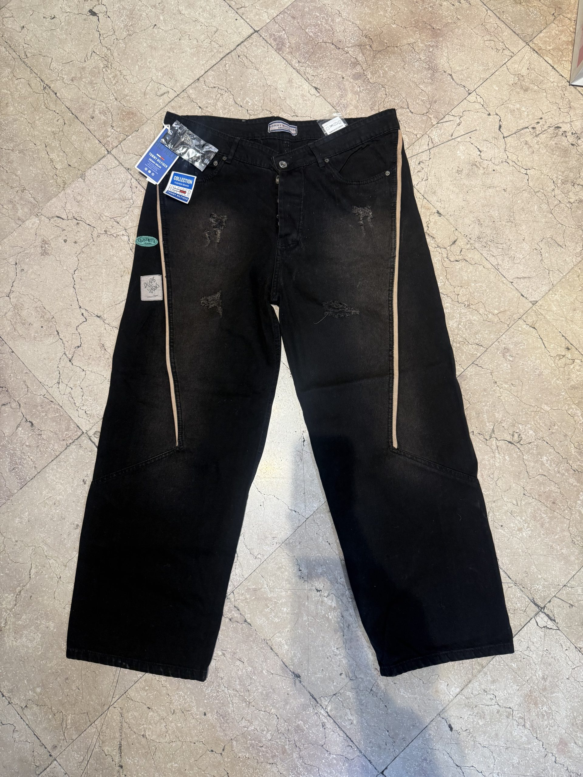 این شلوار جین خمره ای مردانه که از تصاویر مشهود است، نمادی از مد است که با استقبال، به یکی از ترندهای اصلی پوشاک خیابانی (Streetwear) تبدیل شده است.