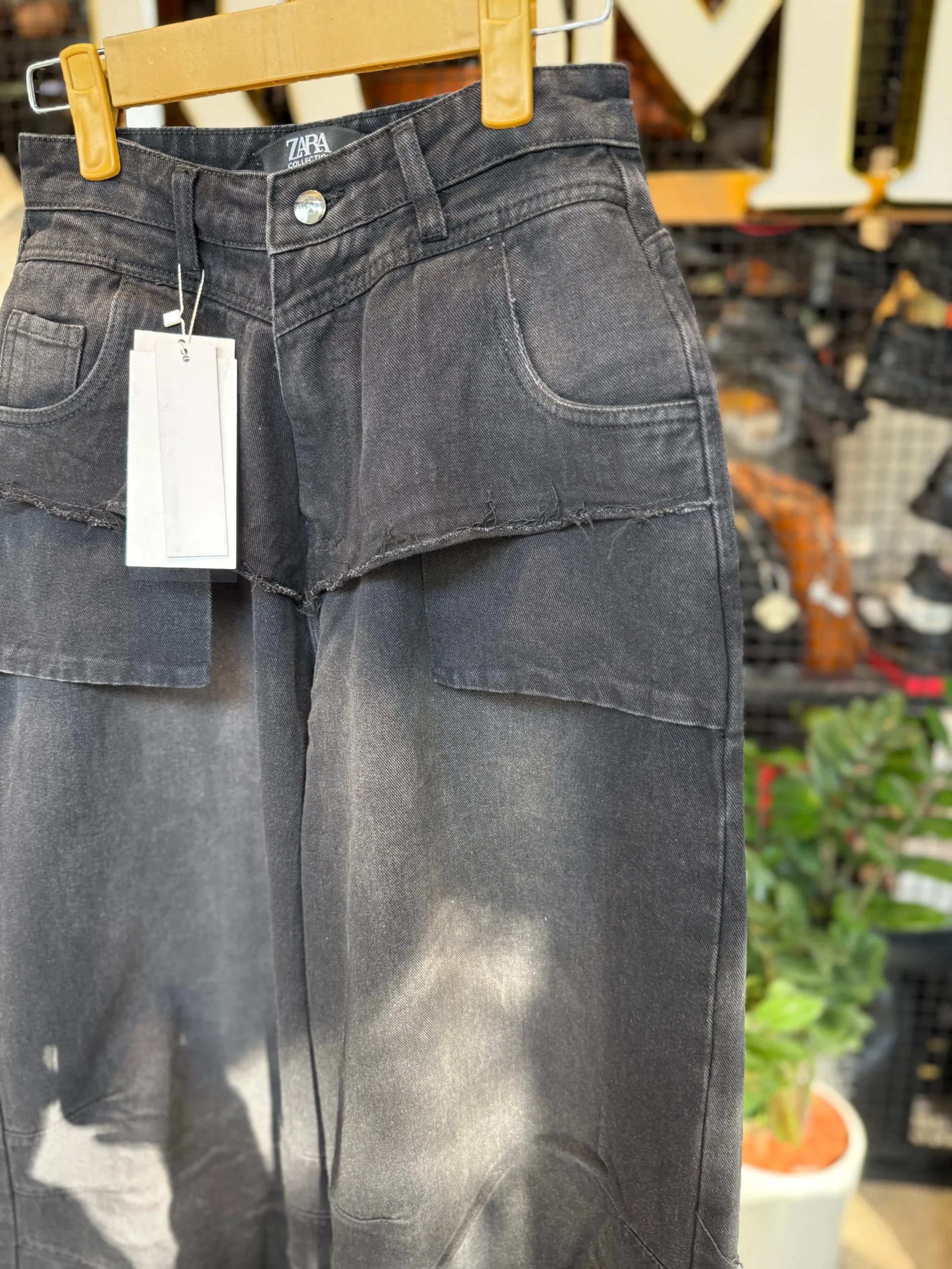 شلوار فول بگ ذغالی کيف چسبي لبوبو