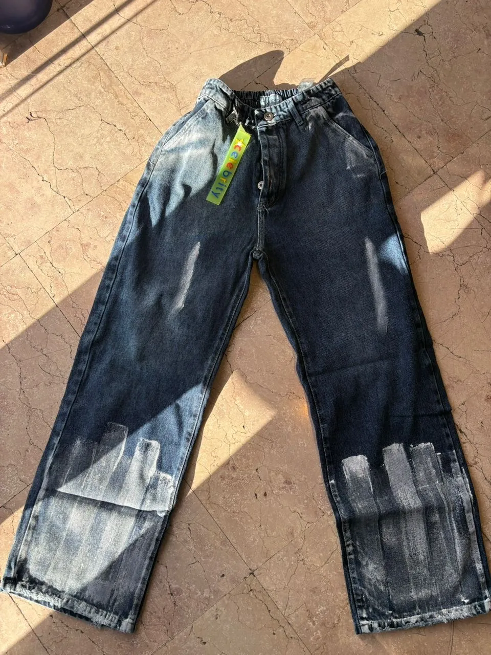 شلوار فول بگ پايين طرح رنگ پاچی آبی