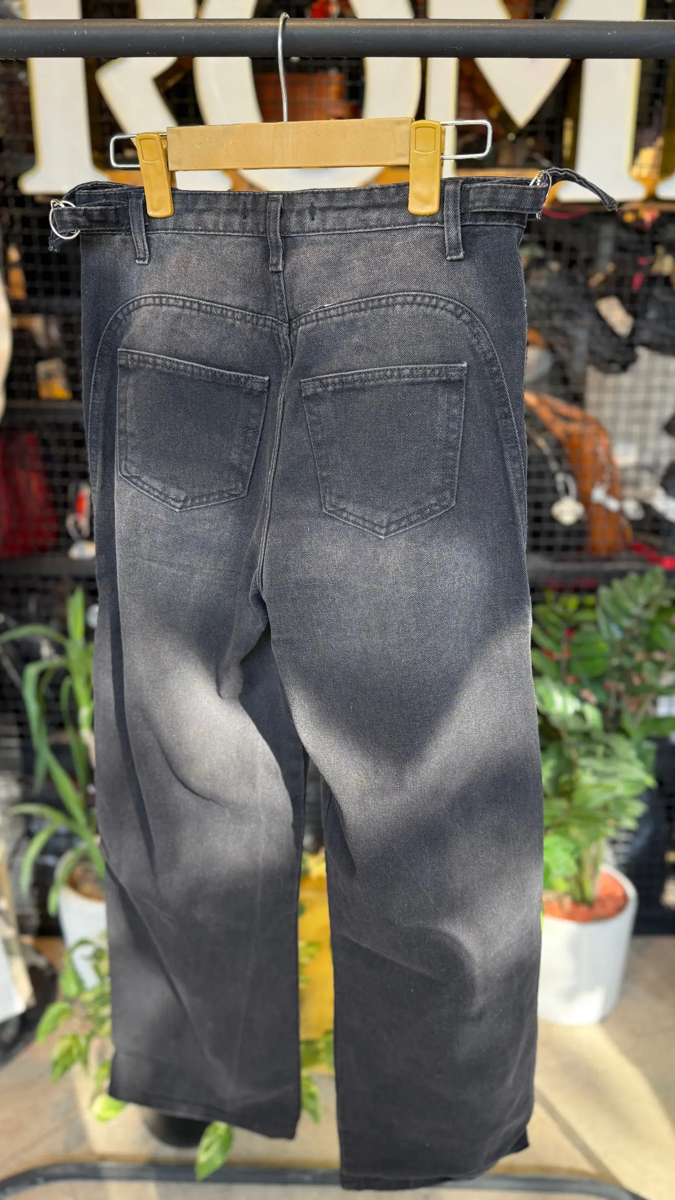 شلوار نيم بگ ذغالی کمردار