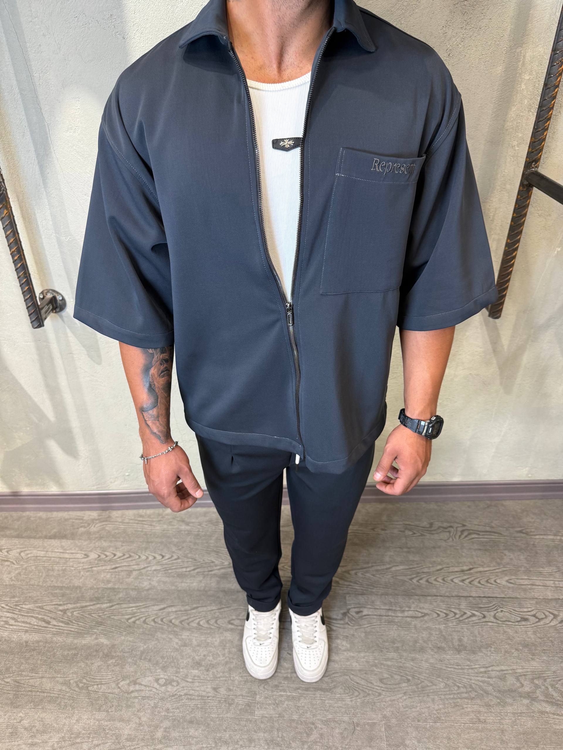 پيراهن زيپ دار تک جيب گلدوزيrepresent