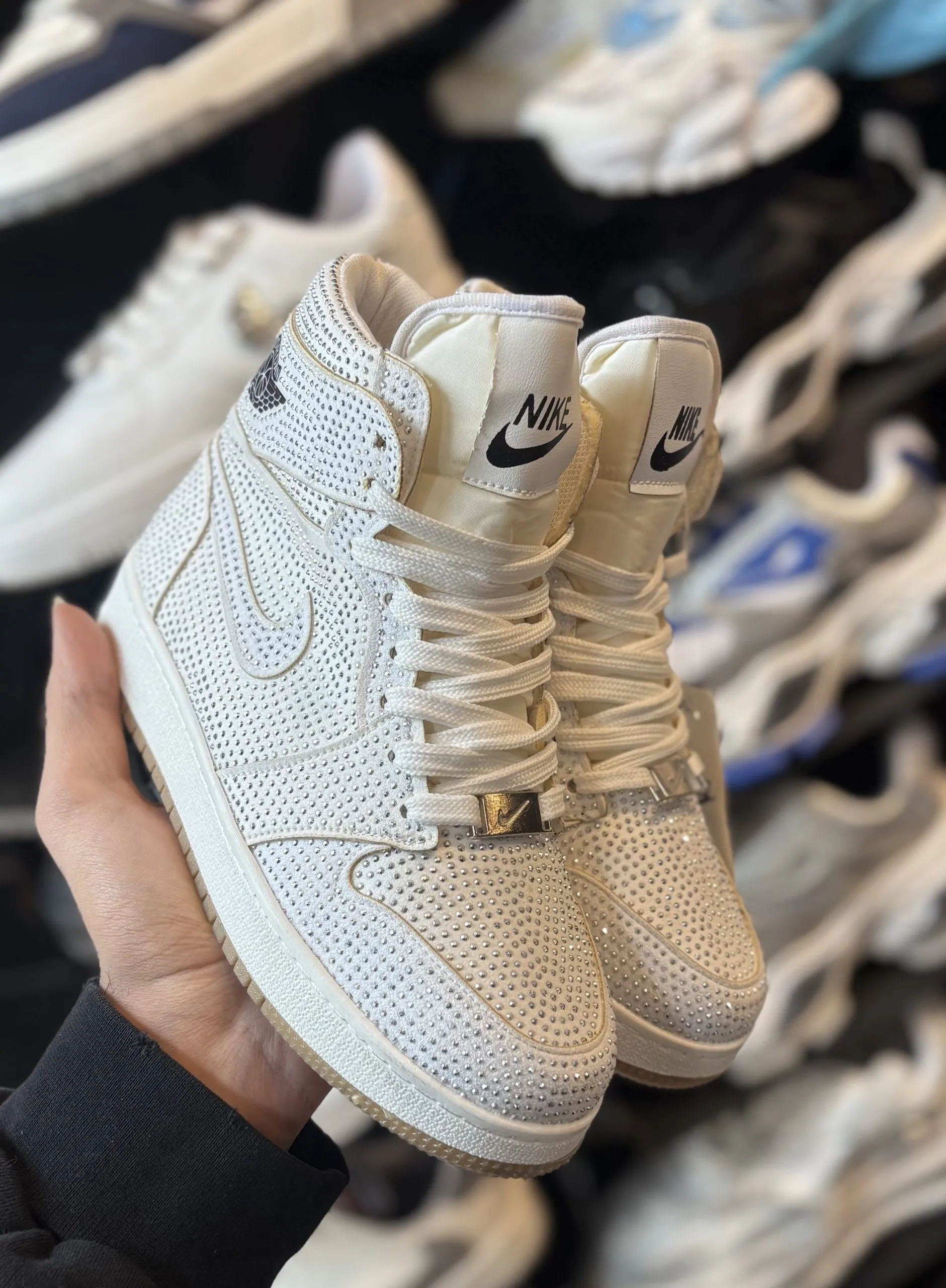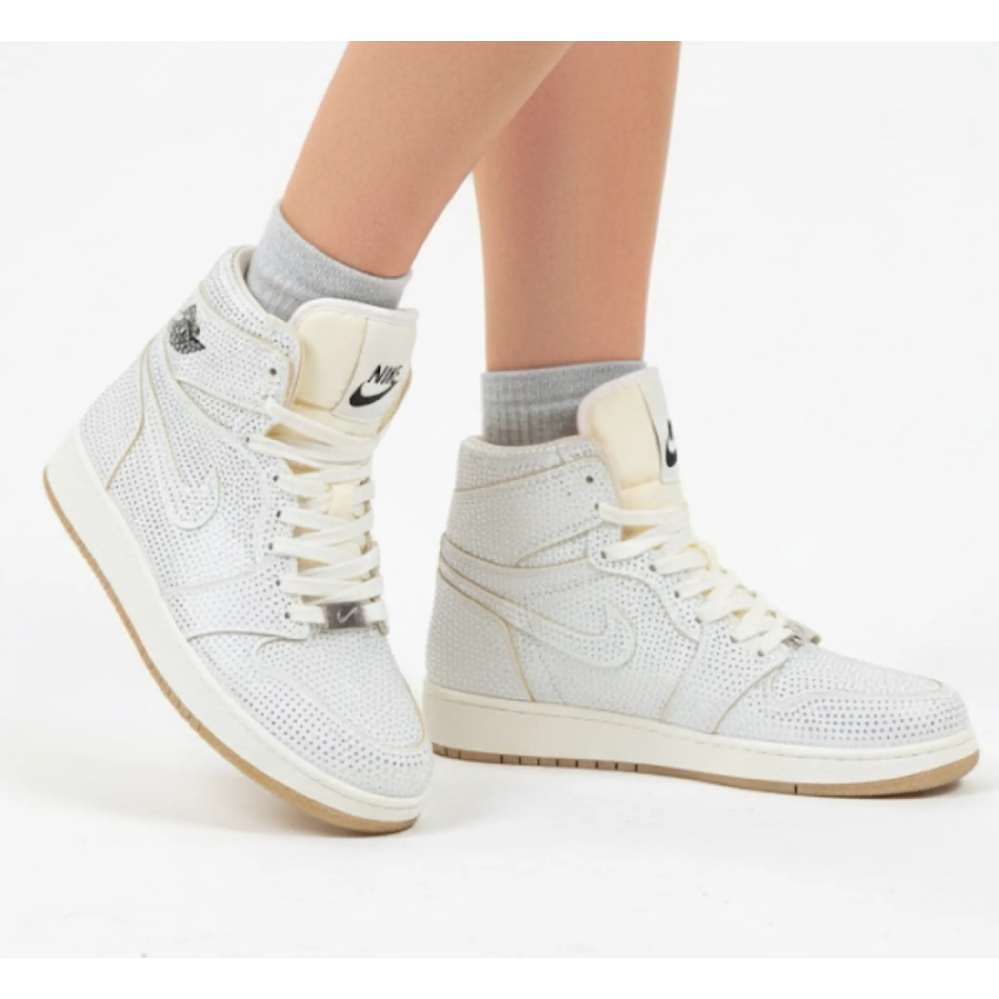 کتونی جردن ساقدار نگين دار سفيد