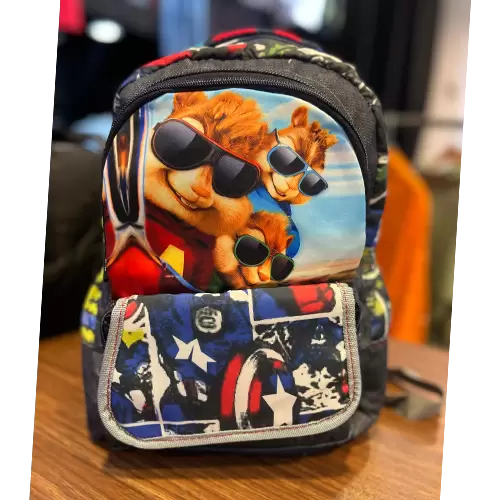 کوله پشتی مدرسه طرح دار جلو زيپ