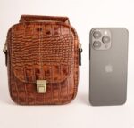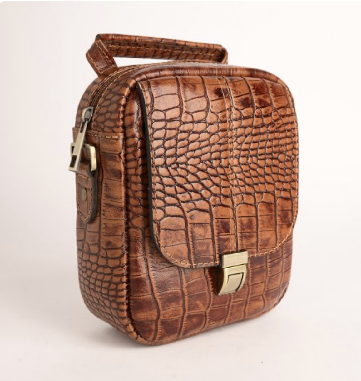 کیف دوشي چرم طبیعی قفل دار عسلي